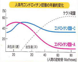 細胞では栄養の吸収や排泄の新陳代謝が行われなくなり、疲れやすくなったり細胞が劣化して病気の原因にいもなります。また、関節の間にある軟骨のぬるぬるもコンドロイチンです。コンドロイチンが不足することにより、痛みを感じるようになります。