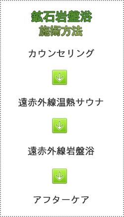 遠赤外線岩盤浴により、リラックスして疲れが取れ体内エネルギーがアップします。